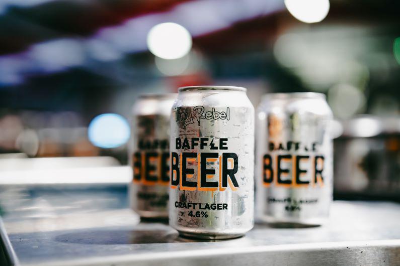 Baffle Beer. Made by Tiny Rebel. Enjoyed by everyone else.