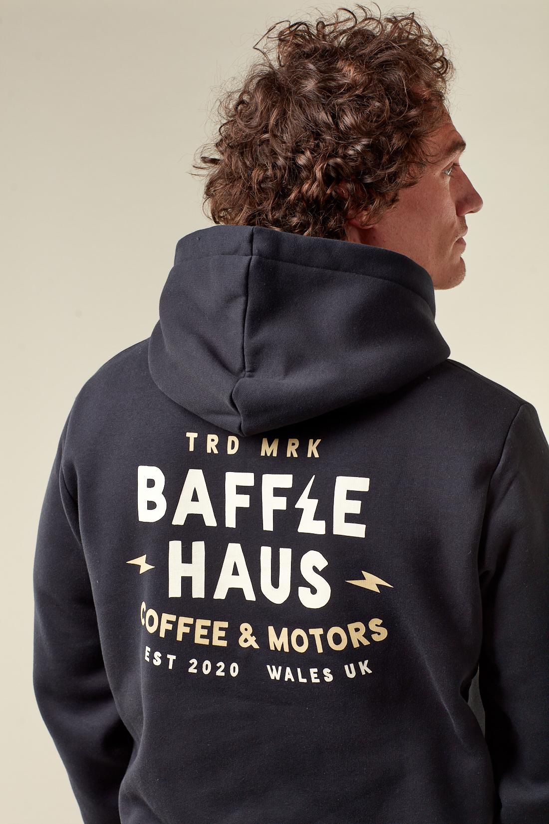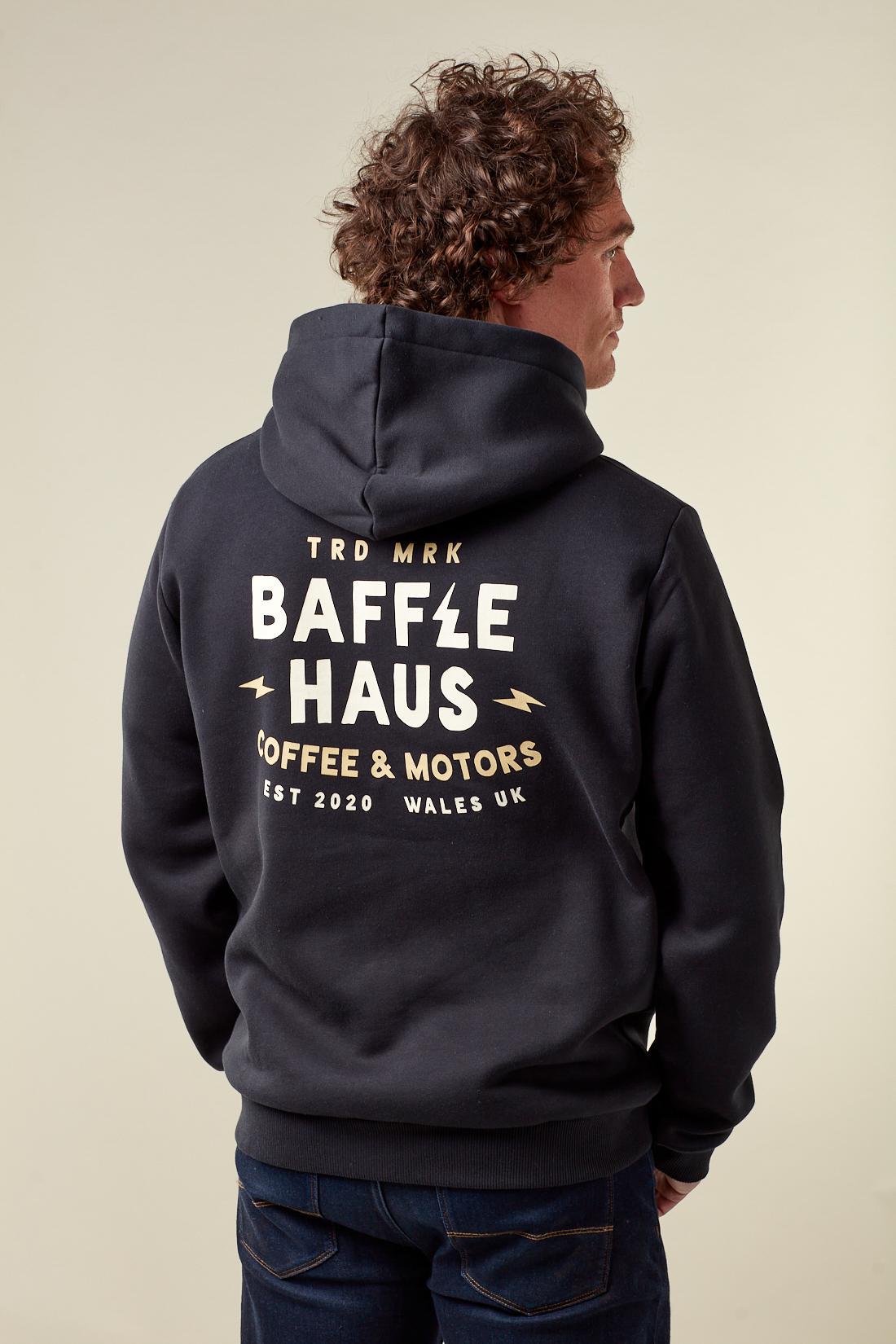 A refined essential built for everyday wear. The Baffle Coffee & Motors Hoodie - Jet Black is crafted from a heavyweight 80% cotton, 20% polyester blend, offering a standard fit with a soft, durable finish.