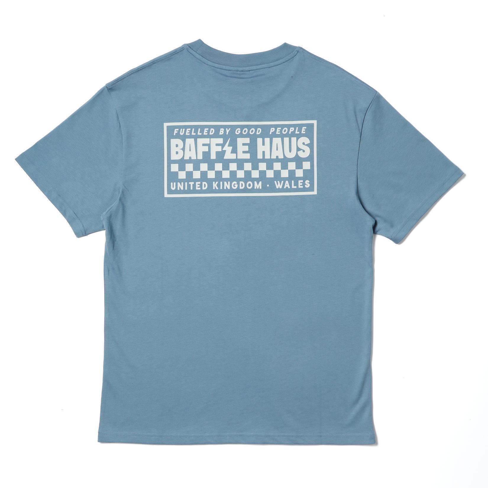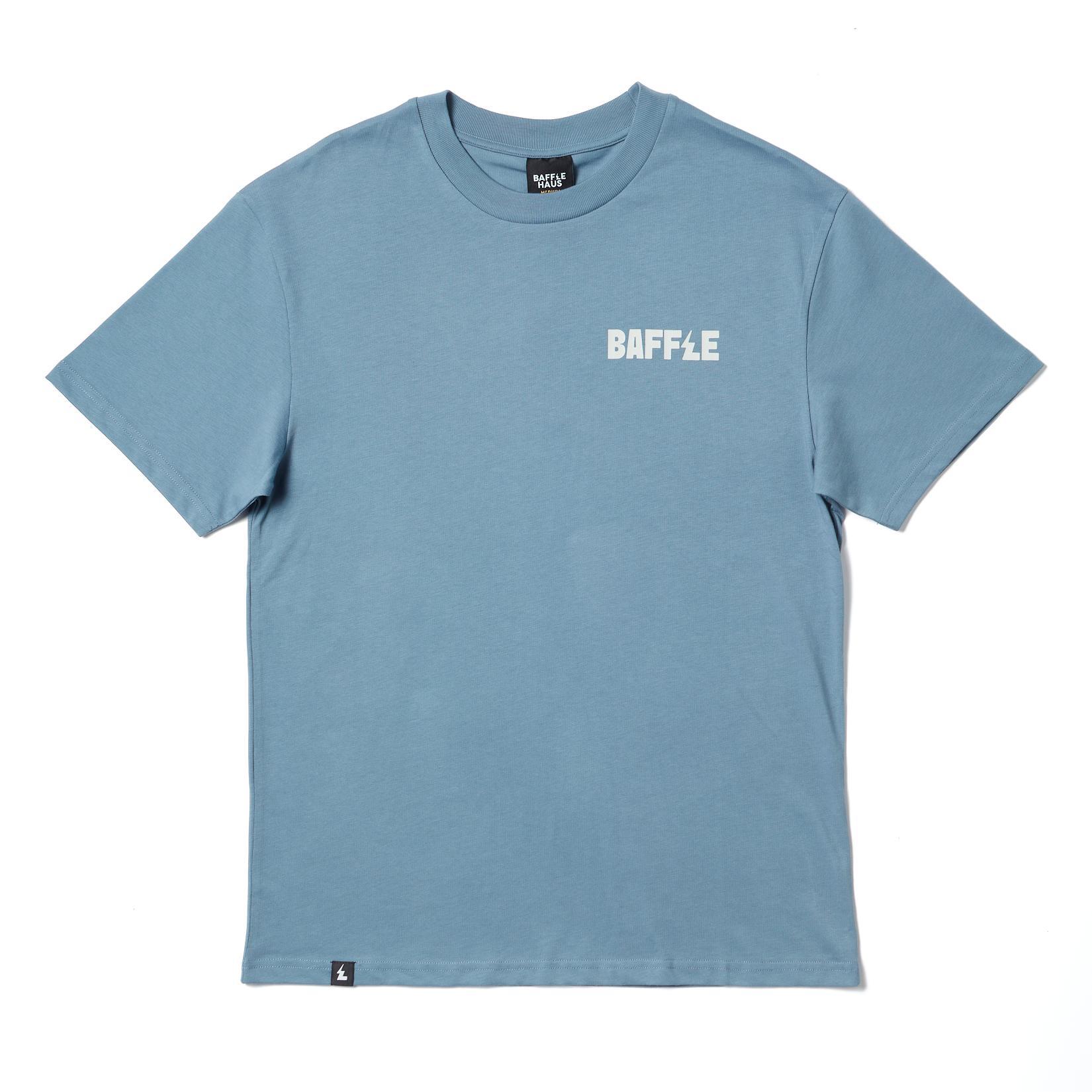 A clean essential built for everyday wear. The Baffle Haus Flags Tee in Coastal Blue is crafted from 100% soft cotton, offering a comfortable standard fit.