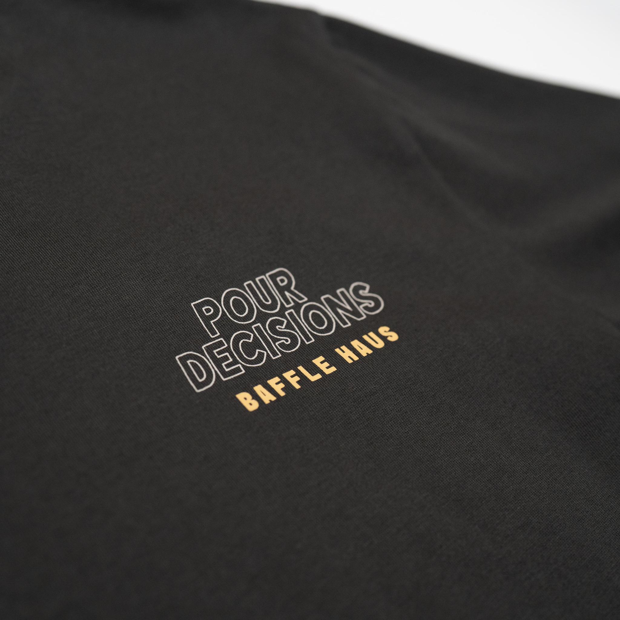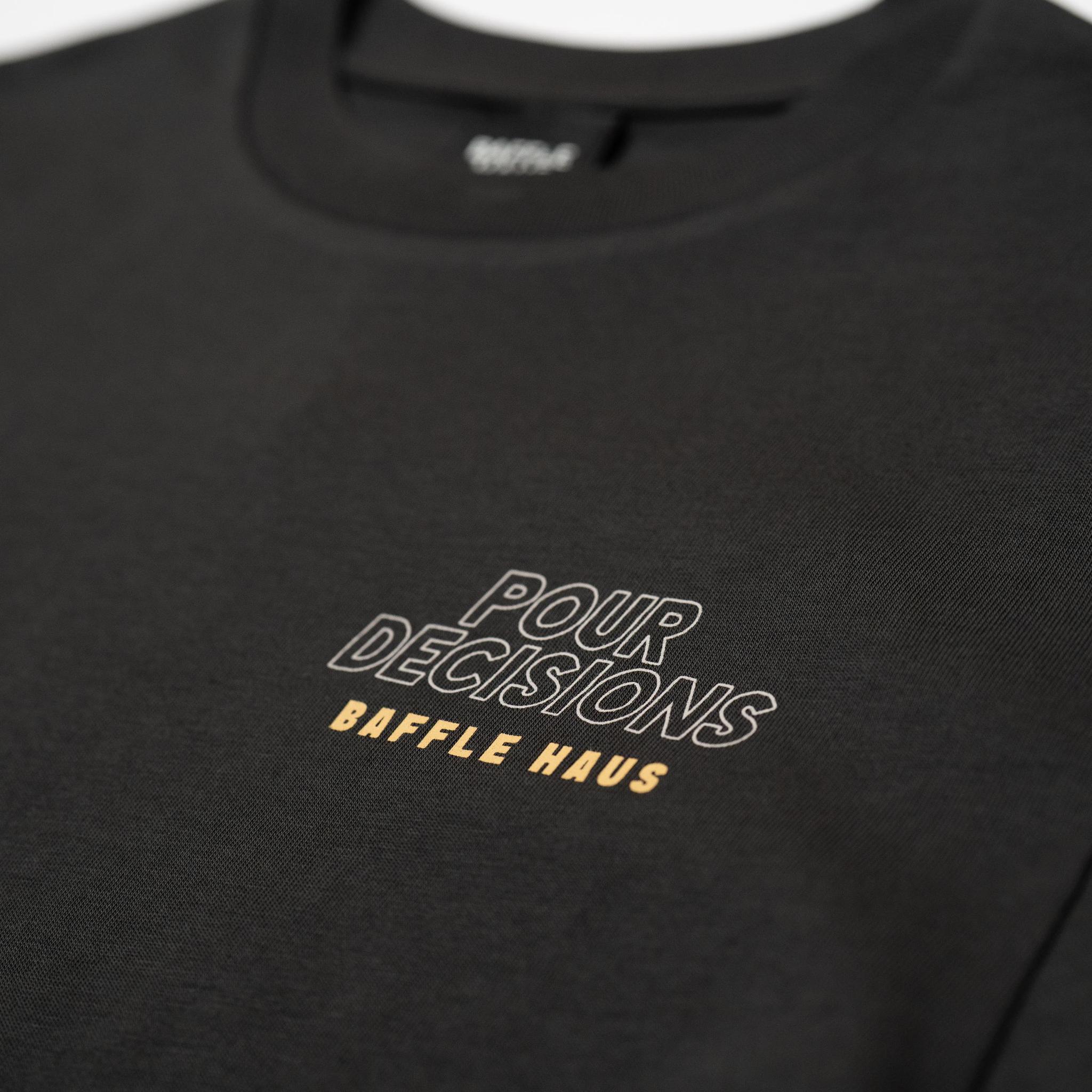 These tees are celebrating the madcap charm of Pour Decisions. They’re more than threads; they’re a badge of belonging to the Baffle Haus community, where every questionable classic and every steaming cup comes with top notch company. Snag yours now and wear your love for the road, the brew, and the brilliant folks who make it all worthwhile before they disappear like a bad bet at a car auction.