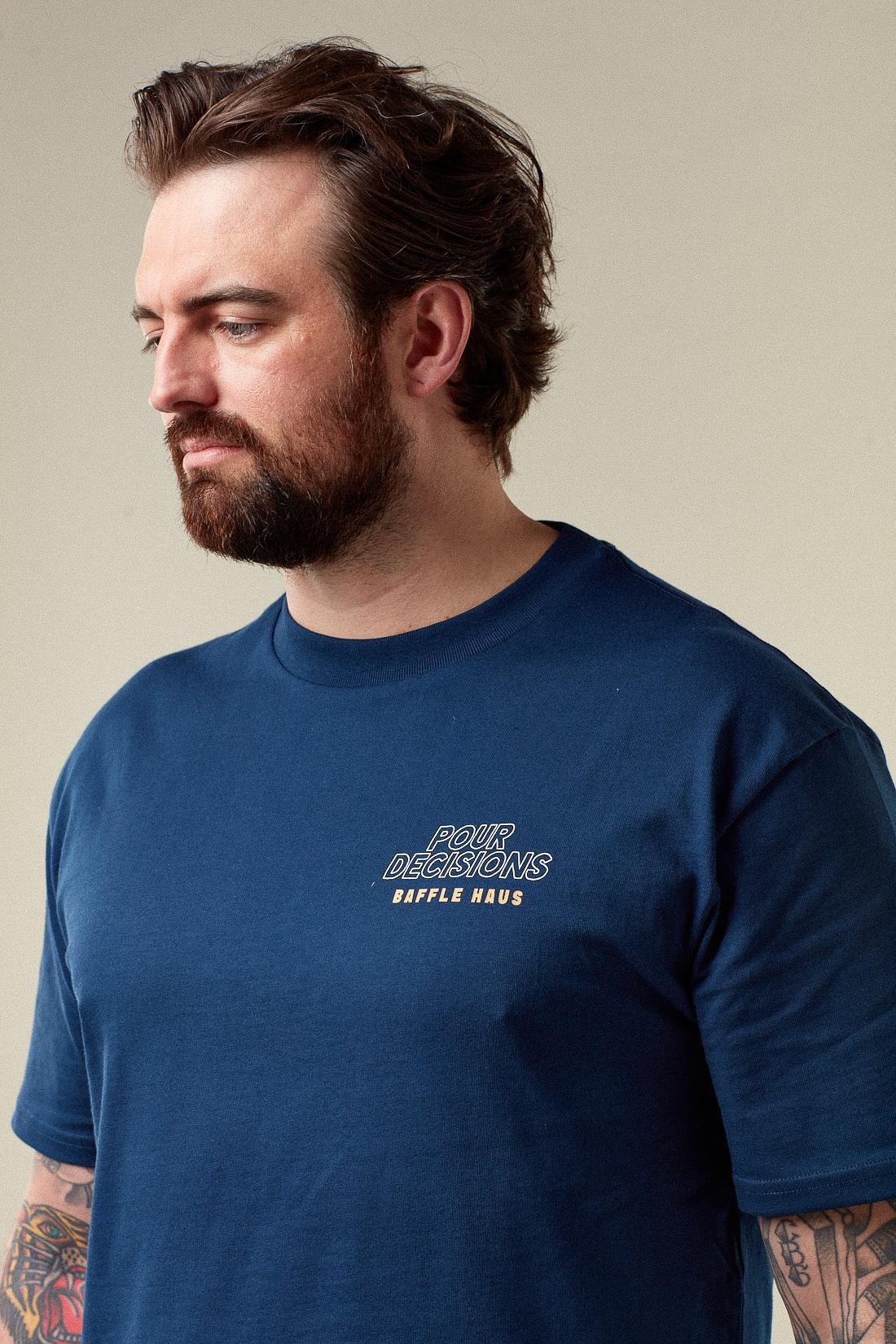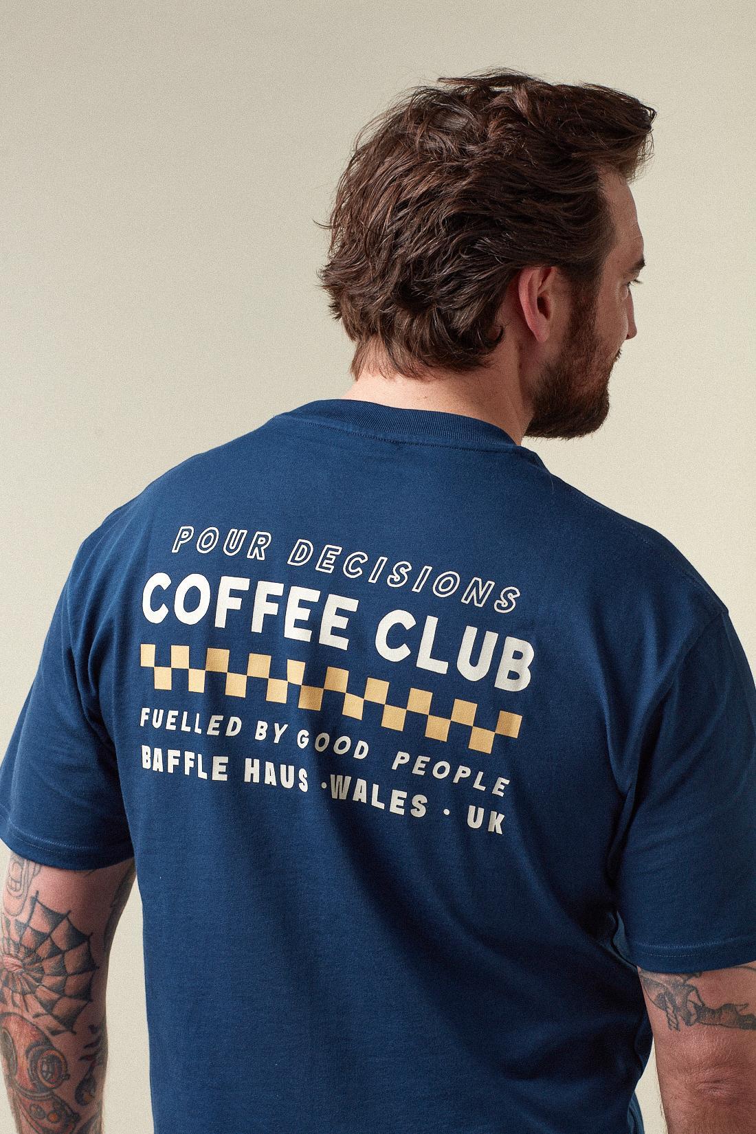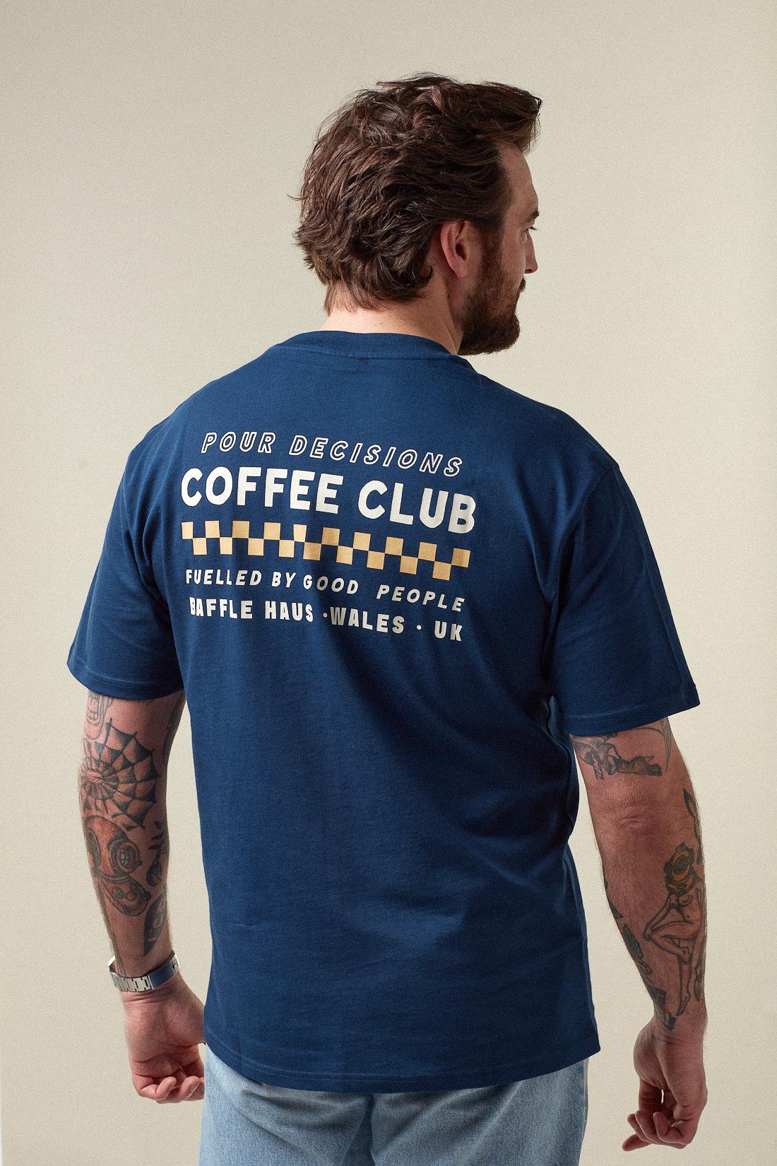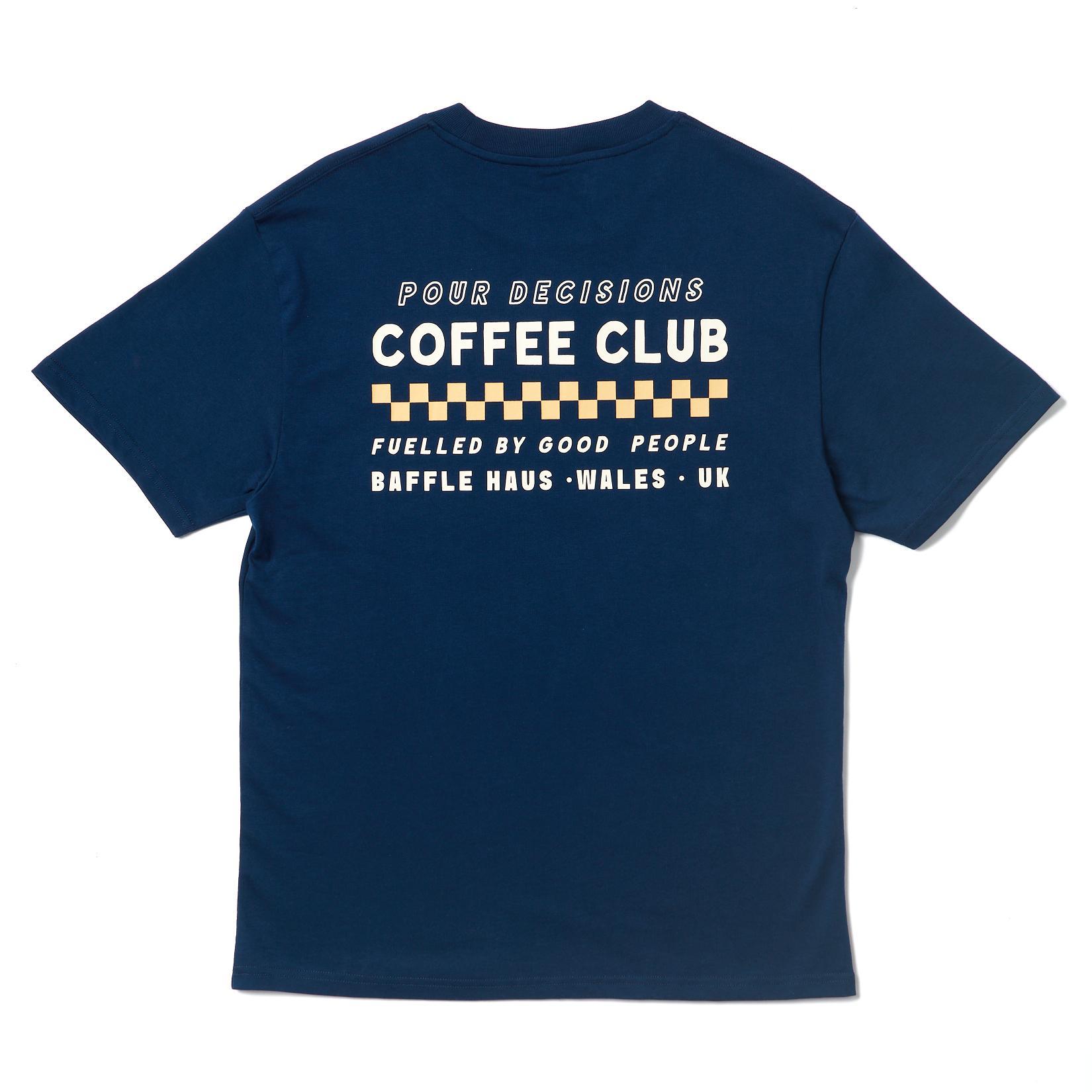 A clean essential built for everyday wear. The Baffle Haus Pour Decisions Coffee Club Tee in Royal Navy is crafted from 100% soft cotton, offering a comfortable standard fit.