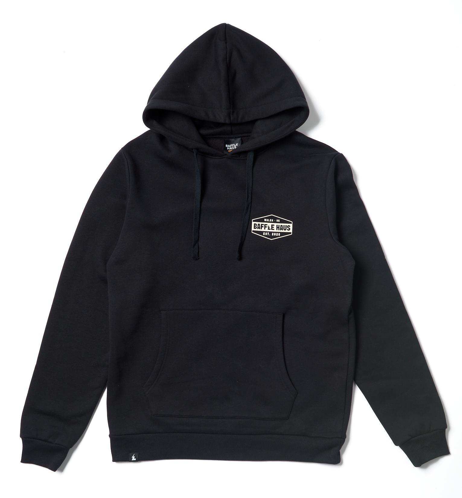 A refined essential built for everyday wear. The Baffle Hoodie - Jet Black is crafted from a heavyweight 80% cotton, 20% polyester blend, offering a standard fit with a soft, durable finish.