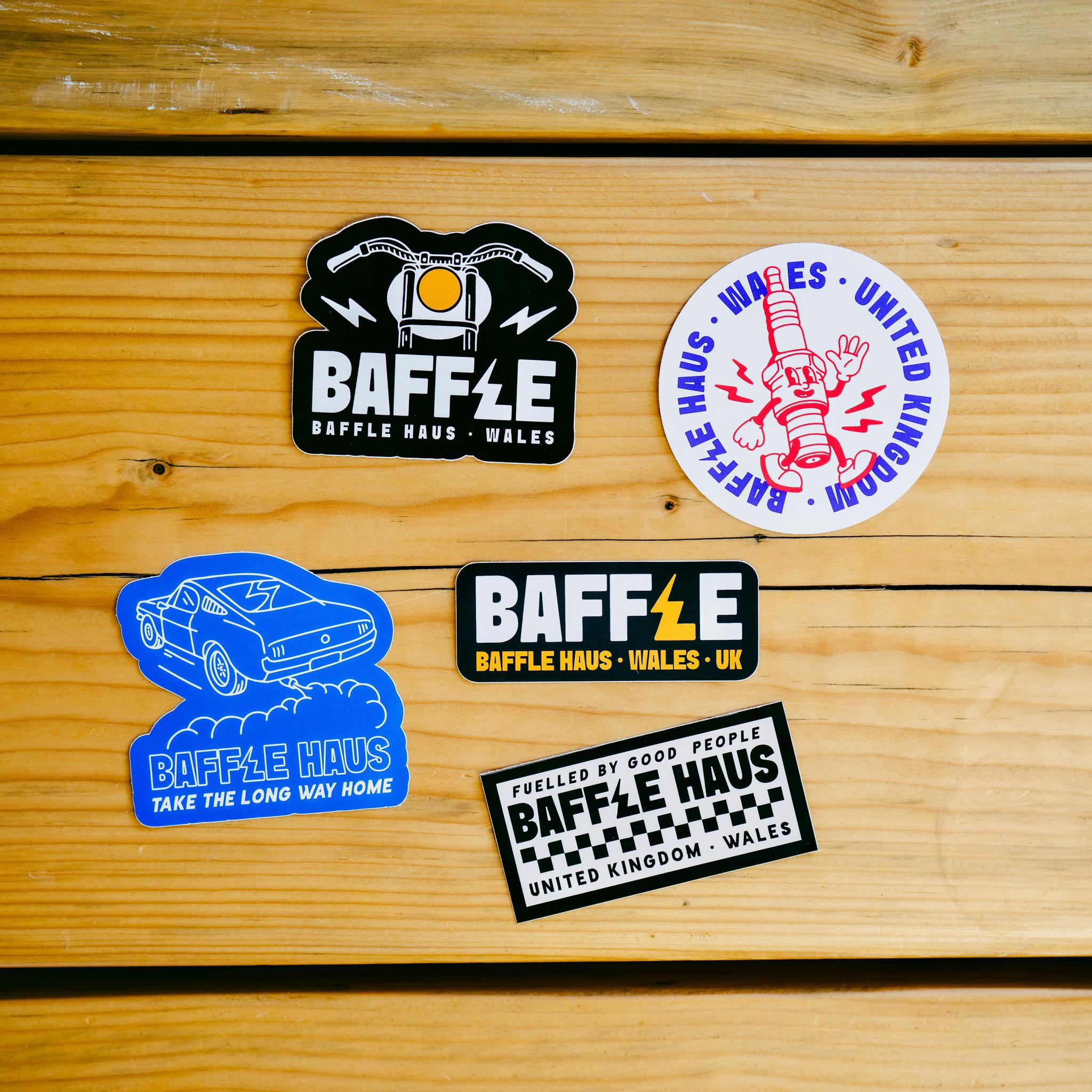 Personalise your gear with the Baffle Sticker Pack, a vibrant collection of our most iconic and latest designs! Perfect for decorating your bike, helmet, laptop, or water bottle, this pack features a variety of high quality, durable vinyl stickers inspired by the Baffle Haus vibe. Each sticker is weather resistant and easy to apply, ensuring your style stays bold on every ride. Share the ride with these unique designs, crafted for riders, rovers, and roamers who live for the open road.