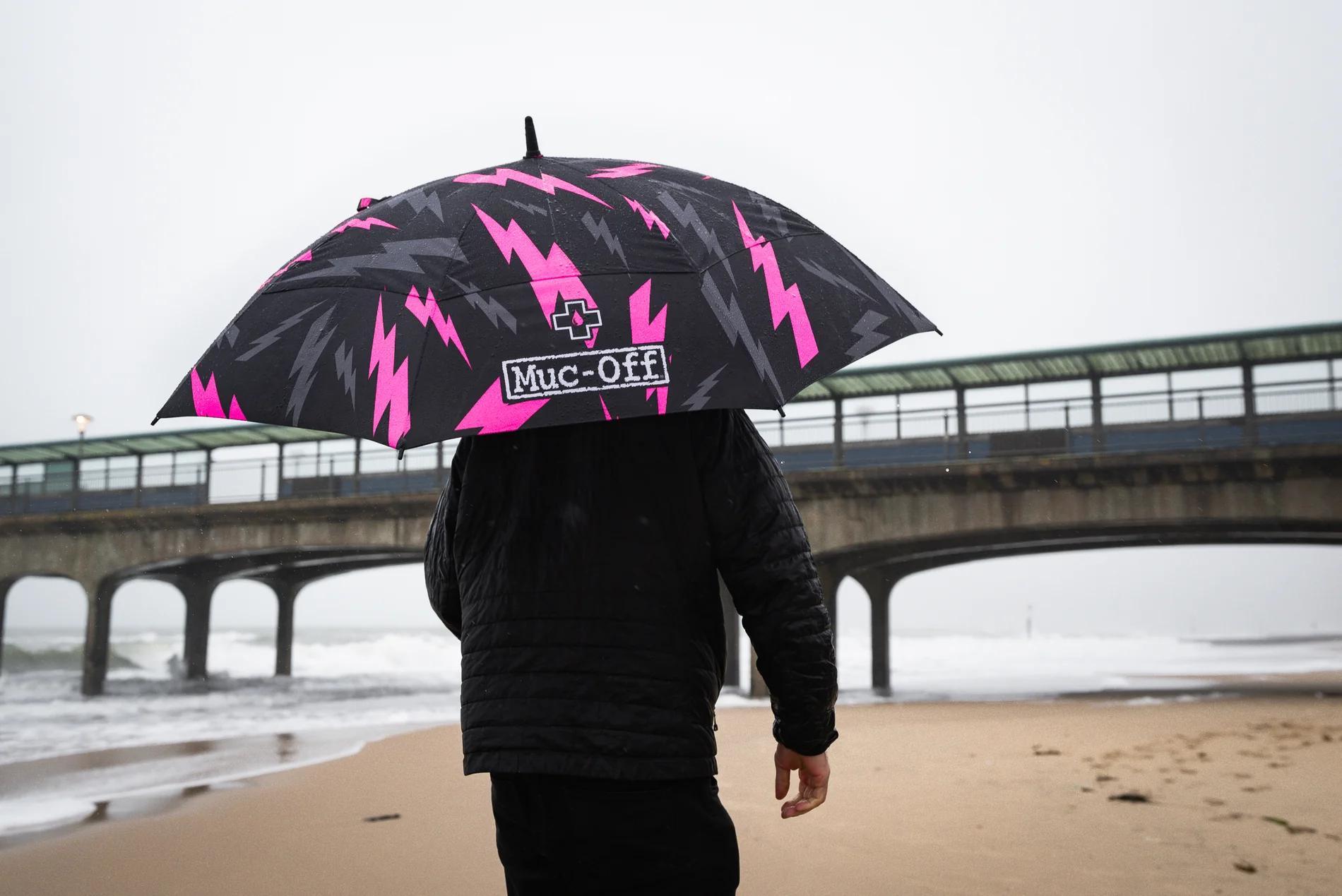 Introducing the Muc-Off Bolt Umbrella, your new storm-slaying sidekick. Forget goofy golf umbrellas, this beast is built for action, not a fairway stroll.