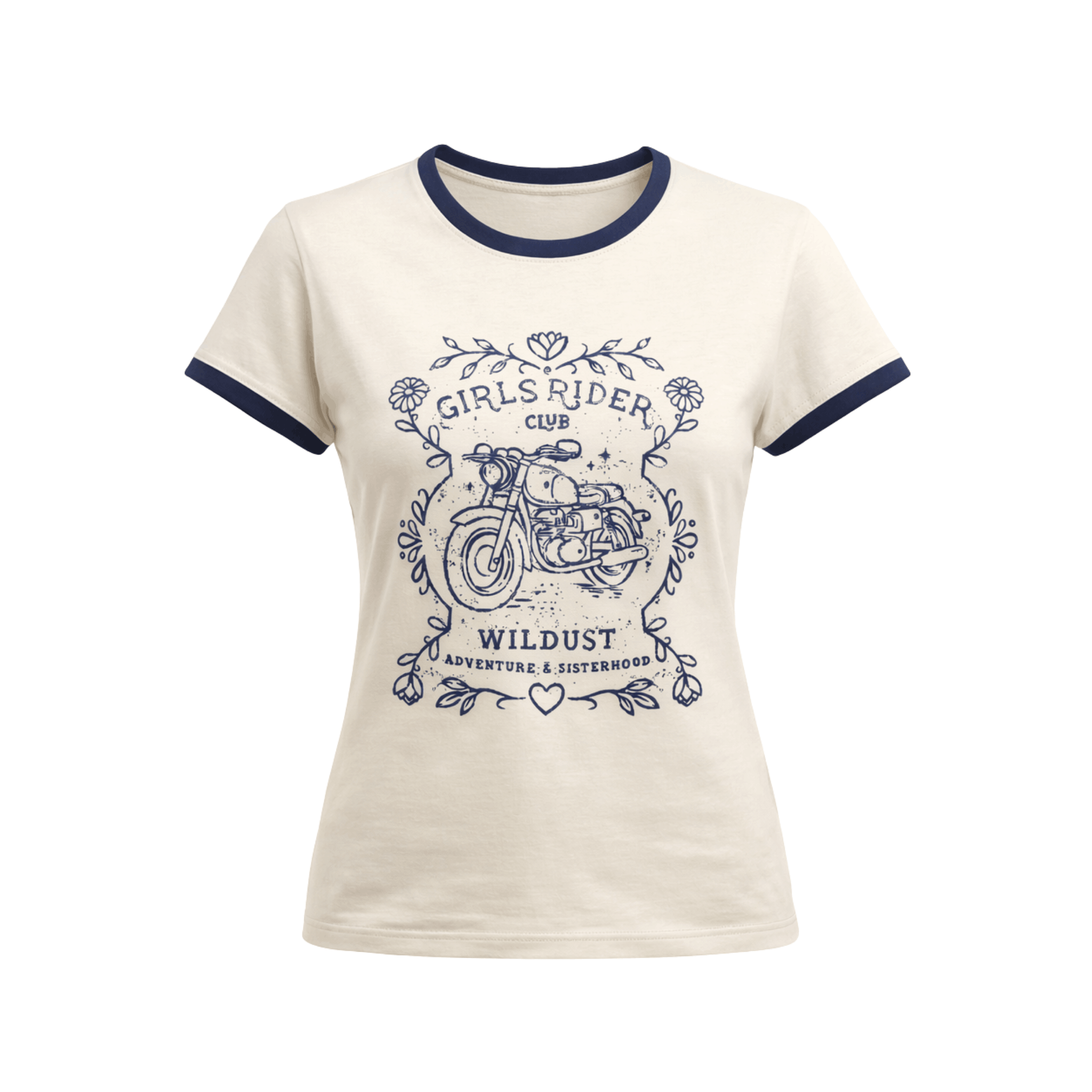 This ringer shirt is directly inspired by the post-war aesthetic, when the first motorcycle clubs were forming and a few daring women were already daring to take to the road.